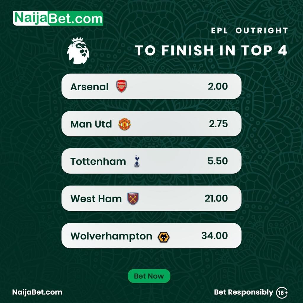 Frequently asked questions when looking to have a bet on who will finish in the top four of the Premier League: